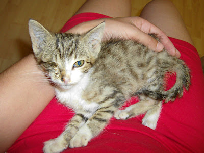 Some pics of our new family member Ozelot ... he's recovering. We don't know yet whether his eye will heal, but the antibiotics seem to help. At least the eye is not as pus-filled anymore. Our vet was so very nice, he helped with medicine and good advice.